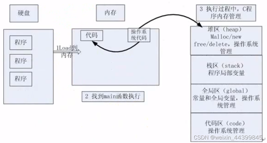 - 操作系统把物理磁盘代码load到内存