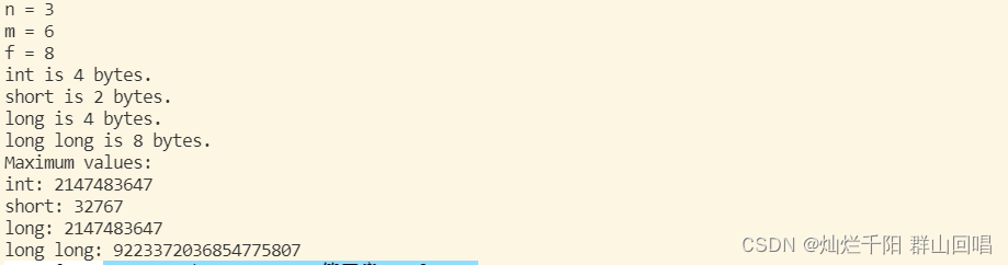 short sam = SHRT_MAX; //-32768-32767 (16位) longlong > long(至少32位)> int > short(至少16位)