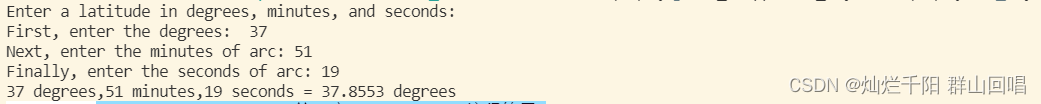 cout << "Enter a latitude in degrees, minutes, and seconds:" << endl;