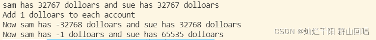 cout << "Now sam has " << sam << " dolloars and sue has " << sue << " dolloars" << endl;