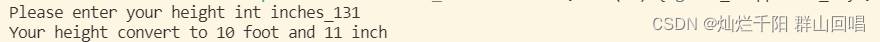 cout << "Your height convert to " << height / FOOT_TO_INCH << " foot and " << height % FOOT_TO_INCH << " inch" << endl;