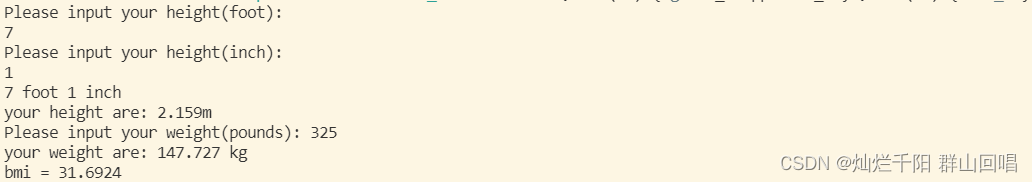 double height = (height_foot * FOOT_TO_INCH + height_inch) * INCH_TO_M; //身高可以是小数故用double