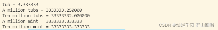 cout << "A million tubs = " << million * tub << endl; // float精度达不到