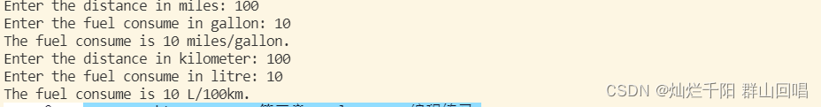 cout << "The fuel consume is " << fuel_consume_us << " mile/gallon." << endl;