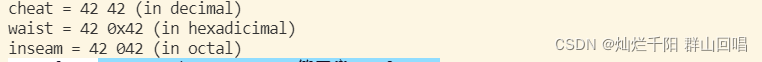 cout << "inseam = " << inseam << " 042 (in octal)" << endl; // cout默认以十进制显示整数