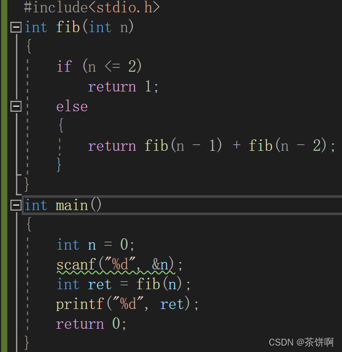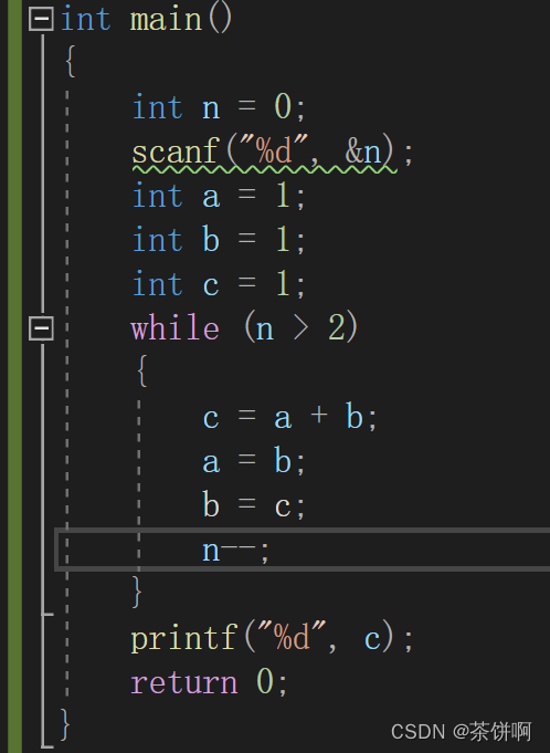 ?但是这种方法效率太低了,因为套娃太多了,,,很多层,递归层次太深了,虽然没有导致栈溢出,但是效率很慢,比如算第50 个斐波那契数列,可能电脑要运行很长时间才能计算下来,下面是效率比较高的算法