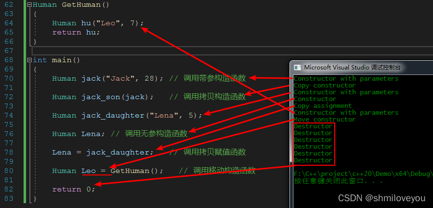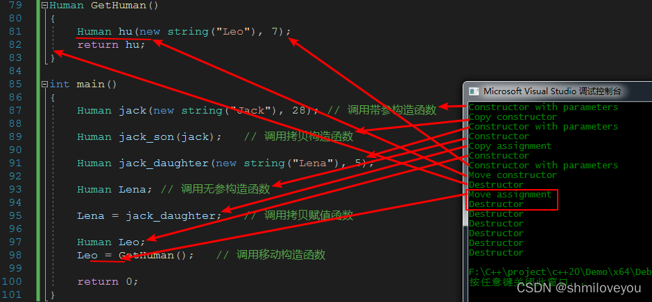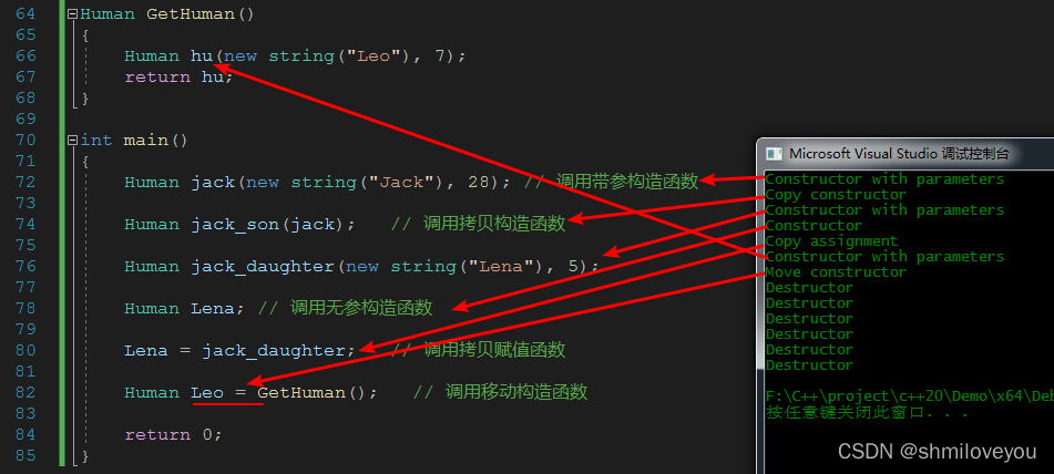 Leo = GetHuman(); // 调用移动构造函数和移动赋值函数