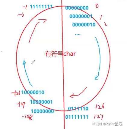 输出结果为:255(-1? -2? -3 … -127 -128 127 126 125 … 5 4 3 2 1 0)