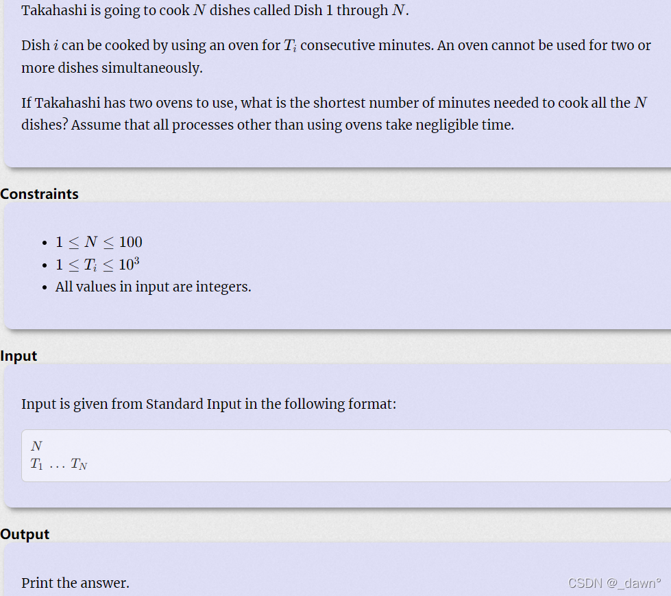 有多个菜品需要不同时间完成,现在有两个烤箱,问最少需要多长时间。