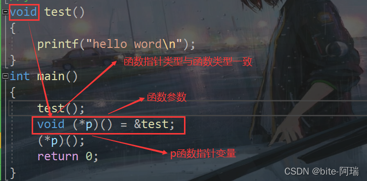 void (*p)() = &test;//