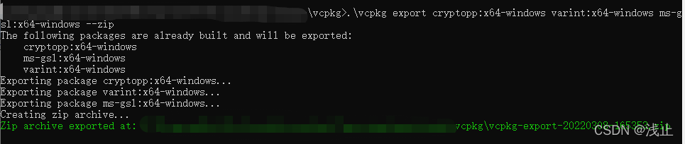 .\vcpkg export cryptopp:x64-windows varint:x64-windows ms-gsl:x64-windows --zip
