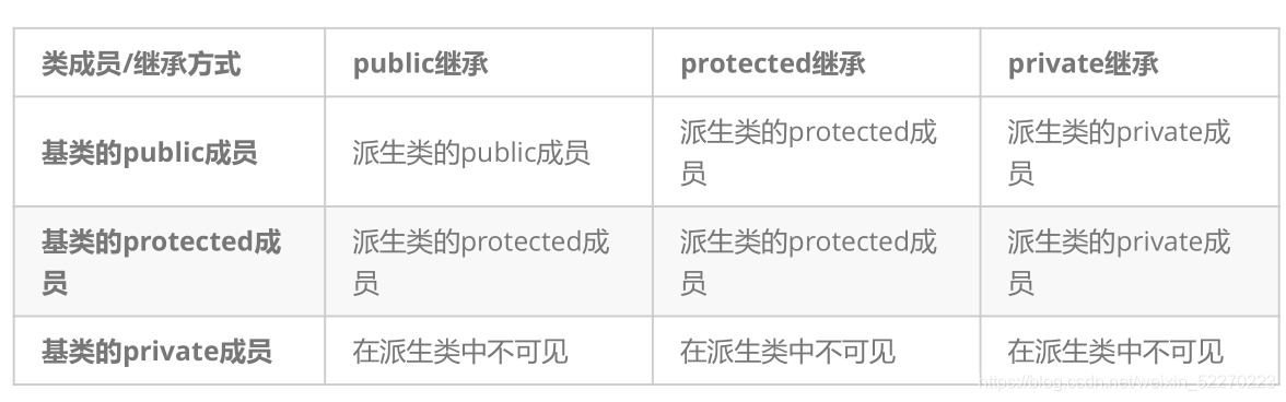无论那种继承方式,在派生类内部都可以访问基类的公有成员和保护成员,基类的私有成员存在但是在子类中不能访问。