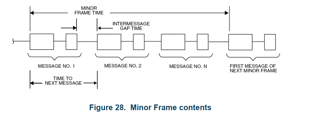 BUsTraEr是DDC公司生产的一个用来监听1553B数据或者模拟1553B数据发送或接收的图形化上位机软件。这里主要讲下如何使用其模拟作为BC发送1553B数据的发送,其实认真看下用户手册相信你也能知道怎么操作。 DDC使用Major和Minor帧的术语来创建MIL-STD-1553B消息。在Minor Frame中编译多个1553消息。然后在一个Major帧中编译多个Minor帧。 看看数据手册提供的图,应该可以清除的看懂其关系:   即当我们构造1553B消息时,消息类型以End of Major消息结束,不同Minor之间以End of Minor消息结尾。因为Minor Frame Time是可以配置的,因此可以用来构造指定时间间隔的不同消息。 例:模拟1553B的BC向某指定RT地址先发送一条接收消息,1s后再发送一条发送消息。 如下图:我们按照以End of Major消息结束,不同Minor之间以End of Minor消息结尾,Minor Frame Time配置为1s  运行后可看到两条消息间隔为1s(1000002us).