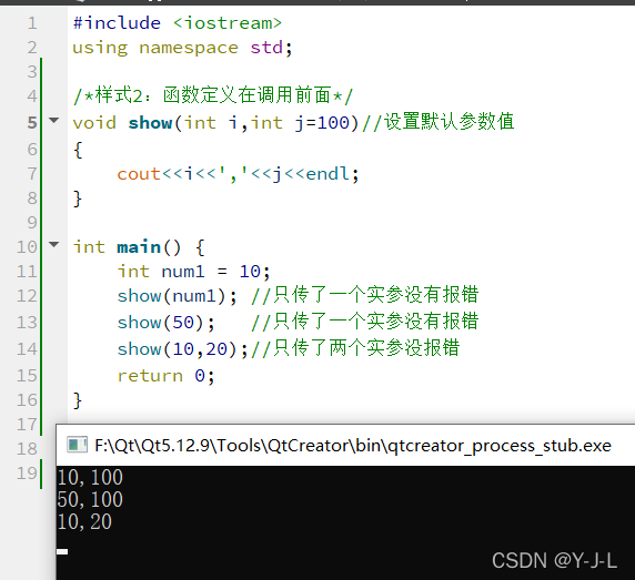 ?????????在C++中,定义函数时可以给形参指定一个默认的值,这样调用函数时如果没有给这个形参赋值(没有对应的实参),那么就使用这个默认的值。也就是说,调用函数时可以省略有默认值的参数。如果用户指定了参数的值,那么就使用用户指定的值,否则使用参数的默认值。 ? ? ? ? 用了函数,那肯定就会有函数的定义和声明,在实际情况中主要有下面几种情况:Ⅰ.函数定义在调用函数前,不需要声明;②.函数定义在函数后面,需要先声明;下面我们对这几个情况进行讨论: