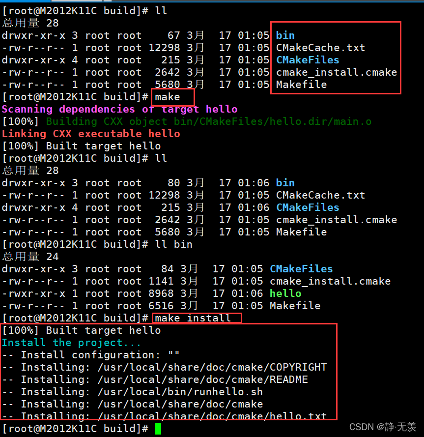 INSTALL的安装可以包括:二进制、动态库、静态库以及文件、目录、脚本等