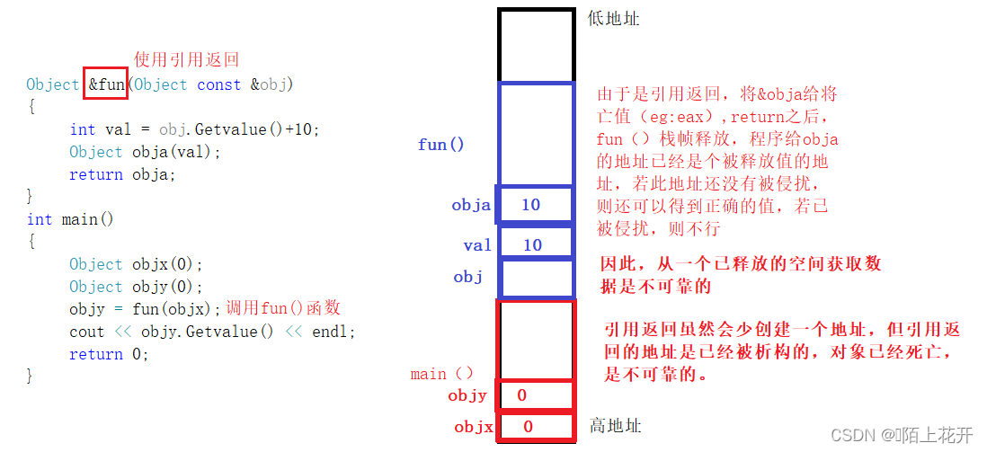 Object fun(Object &obj)//若不想让引用改变原对象,可加上const ,Object fun(const Object &obj)