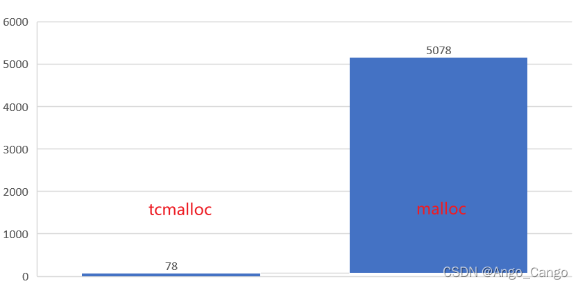 使用 tcmalloc 耗时 78ms,使用原生 malloc 耗时 5078ms,耗时对比:?