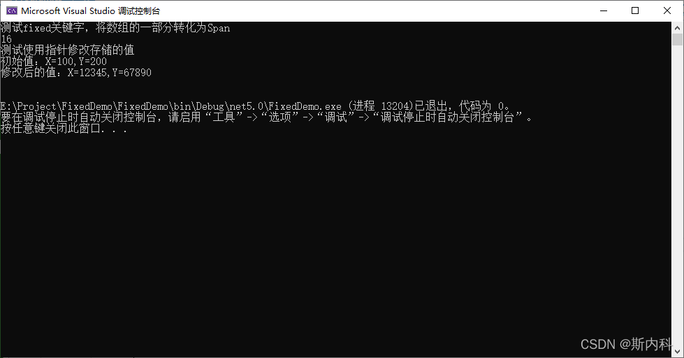 Console.WriteLine($"测试fixed关键字,将数组的一部分转化为Span");