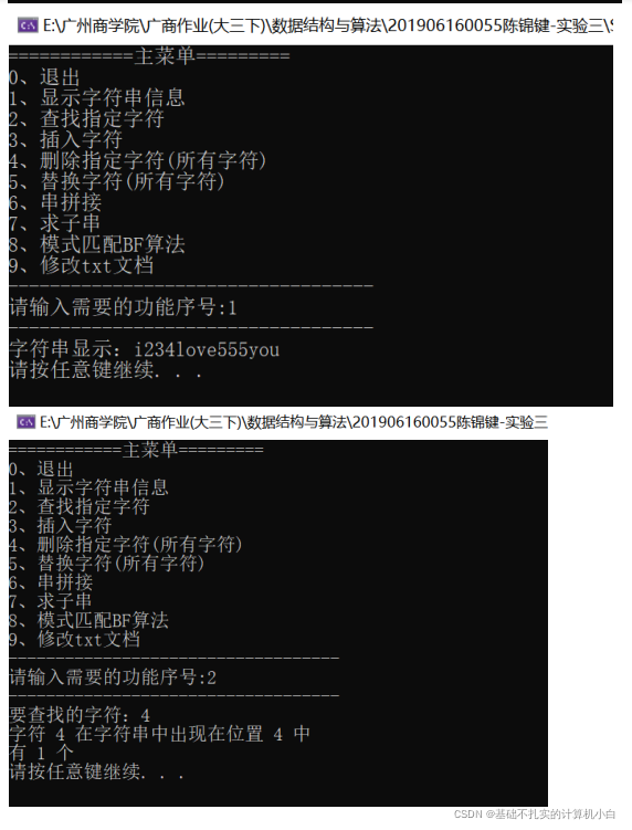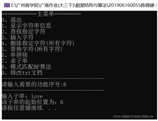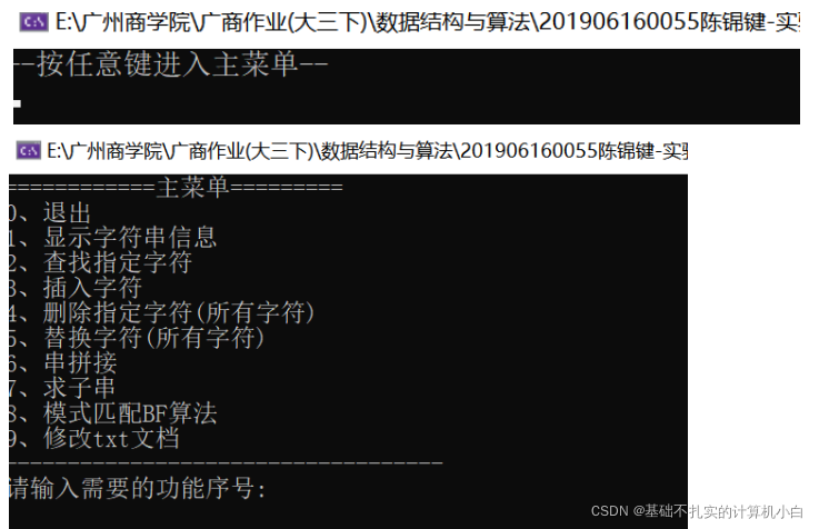 2.设计系统主界面,要求选择菜单对应数字进入相应功能: