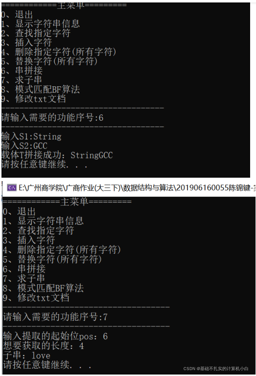 (6) 字符串拼接,定义三个字符串T,S1,S2,将S1,S2复制到T中,注意:先放入S1,后放入S2.