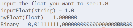 注:说明一下为什么一定要用int型指针来处理float数,按理说用什么类型的指针都可以处理float数,但是因为后面为了获取每一位的具体数值,需要用到位操作,而位操作要求运算数是int型,所以才需要用int指针来读取。