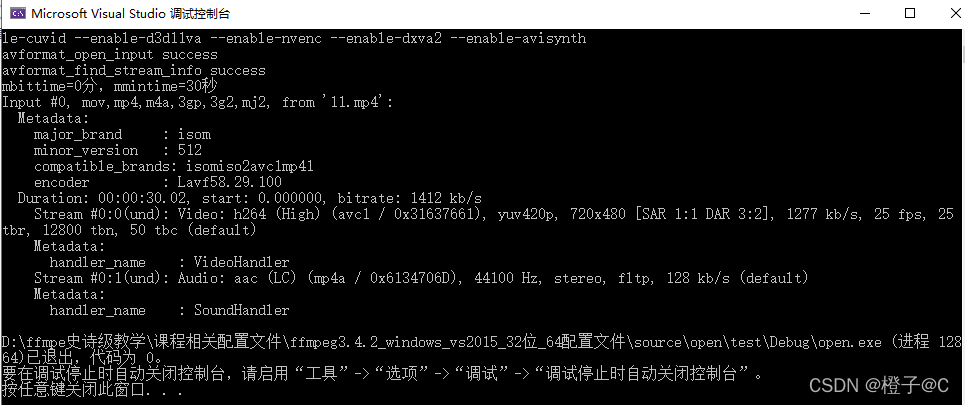 printf("%s\n", avcodec_configuration());//验证工程有没有创建成功