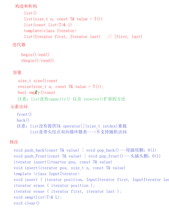 方法分为:构造析构,迭代器,容量,访问元素,修改,其他部分