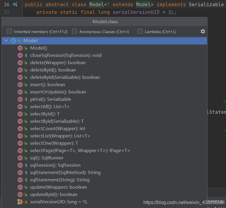 可以从Model类的源码中看到,这其中定义了大量关于CRUD操作的方法。