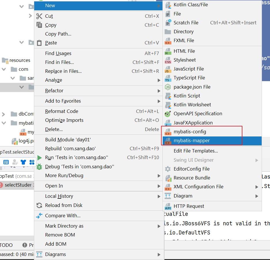 将原生的方式进行大大简化 1.创建实体类的接口StudentDao(码略) 2.在resources下创建与接口名相同的文件夹 ,并在这其中创建一个mapper文件