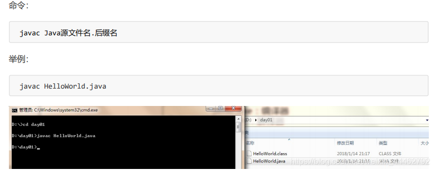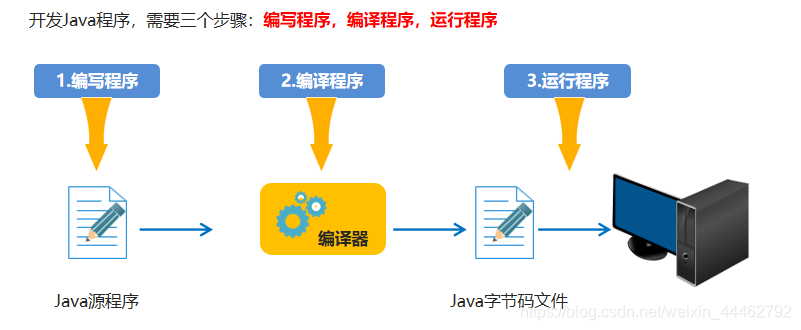 - 编译:是指将我们编写的Java源文件翻译成JVM认识的class文件,在这个过程中, javac 编译器会检查我们 所写的程序是否有错误,有错误就会提示出来,如果没有错误就会编译成功。