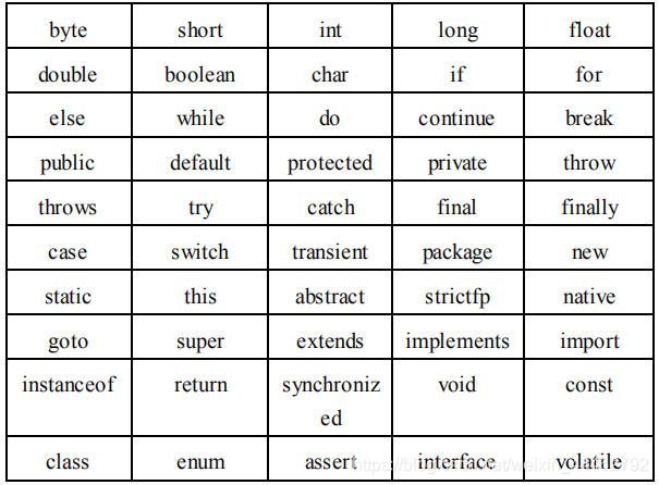 - 官方地址:?https://docs.oracle.com/javase/tutorial/java/nutsandbolts/_keywords.html