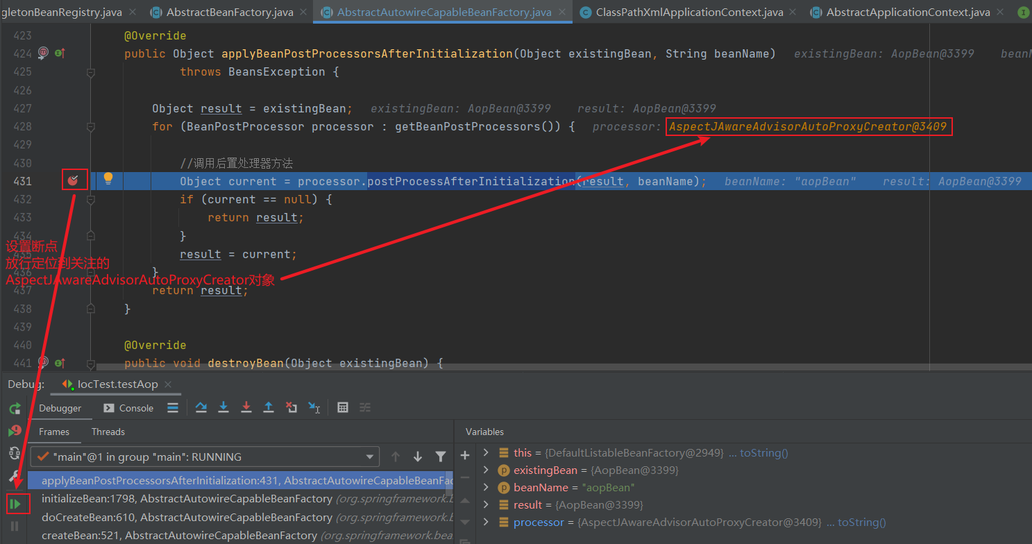 - aop的增强发生在后置处理器中(没有循环依赖)