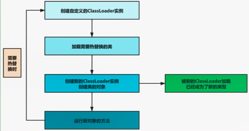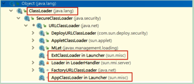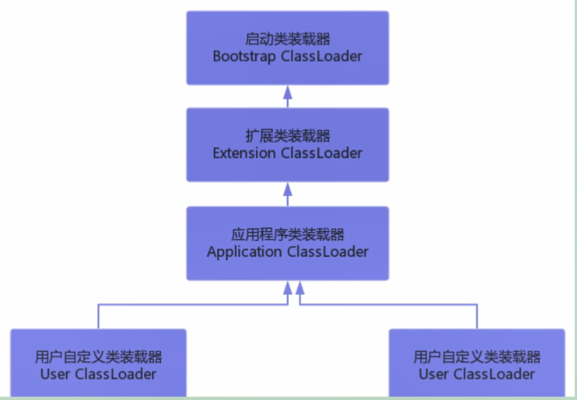 JVM 支持两种类型的类加载器,分别是启动类加载器和自定义类加载器  (1)启动类加载器说明 ① 这个类加载使用C/C++语言实现,嵌套在JVM内部 ② 它用来加载Java的核心库,用于提供JVM自身需要的类 ③ 并不继承java.lang.ClassLoader,没有父加载器 ④ 出于安全考虑,Bootstrap启动类加载器只加载包名为java,javax,sun等开头的类 ⑤ 加载扩展类和应用程序类加载器,并指定为他们的父加载器 (2)扩展类加载器 ① Java语言编写,由sun.misc.Launcher$ExtClassLoader实现 ② 继承于ClassLoader类 ③ 父类加载器为启动类加载器 ④ 从java.ext.dirs系统属性所指定的目录中加载类库,或从JDK的安装目录的jre/lib/ext子目录下加载类库,如果用户创建的JAR放在此目录下,也会自动由扩展类加载器加载  (3)系统类加载器的说明 ① Java语言编写,由sun.misc.Launcher$AppClassLoader实现 ② 继承于ClassLoader类 ③ 父类加载器为扩展类加载器 ④ 它负责加载环境变量classpath或系统属性java.class.path指定路径下的类库 ⑤ 它是用户自定义类加载器的默认父加载器 ⑥ 通过ClassLoader的getSystemClassLoader()方法可以获取到该类加载器 (4)用户自定义类加载器 ① 自定义类加载器来实现类库的动态加载,加载源可以是本地的JAR包,也可以是网络上的远程资源 ② 通过类加载器可以实现非常绝妙的插件机制 ③ 自定义加载器能够实现应用隔离 ④ 自定义类加载器通常需要继承于ClassLoader (5)获取不同类加载器的方法 ① 获得当前类的ClassLoader:clazz.getClassLoader(); ② 获得当前线程上下文的ClassLoader:Thread.currentThread().getContextClassLoader(); ③ 获得系统的ClassLoader:ClassLoader.getSystemClassLoader(); - ClassLoader源码解析