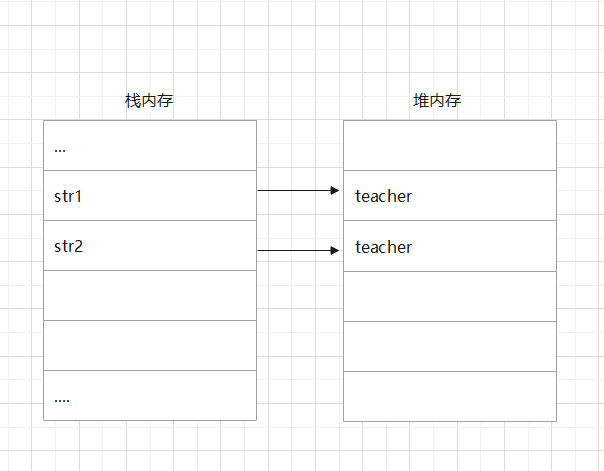 可以看到第二种方式的"teacher"存储在堆内存中,且每次创建一个新的对象,堆内存地址都是不一样的。