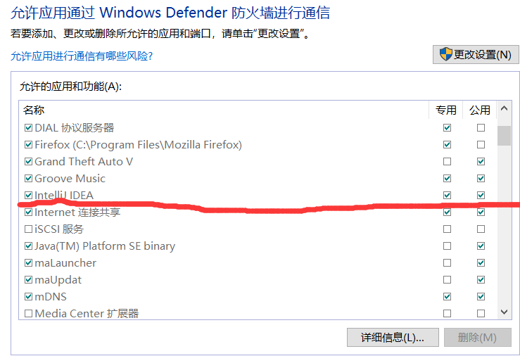 1.2、点击IDEA程序允许在专用和公用网络,点击确认