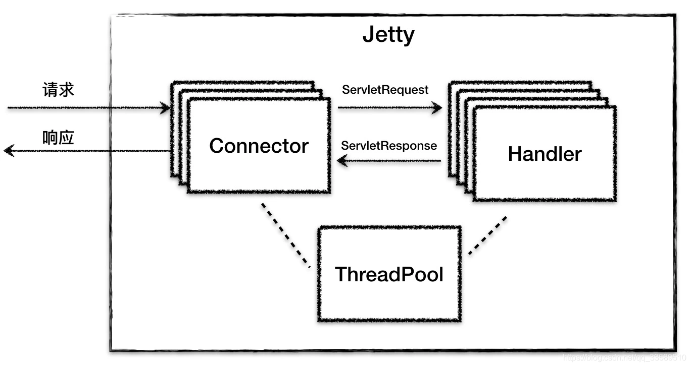 Jetty Server:多个Connector(连接器)、多个Handler(处理器),以及一个线程池