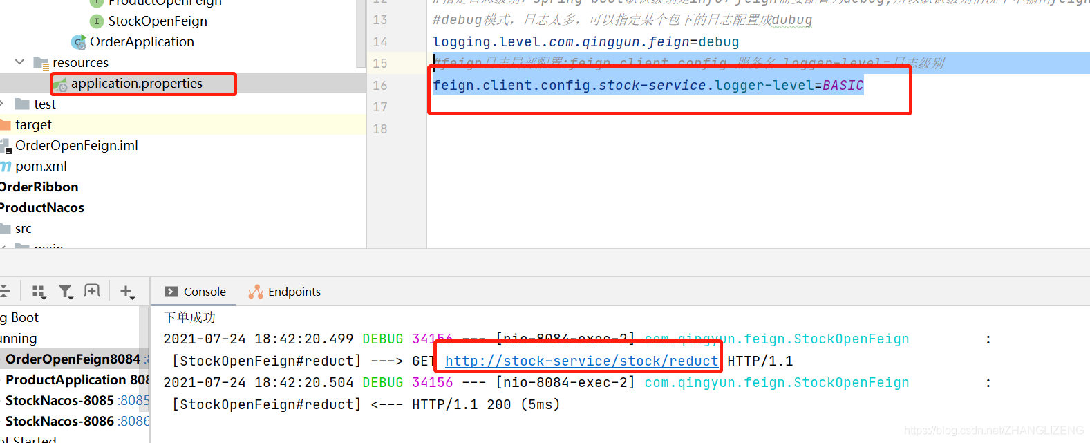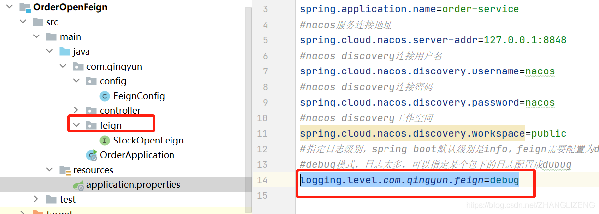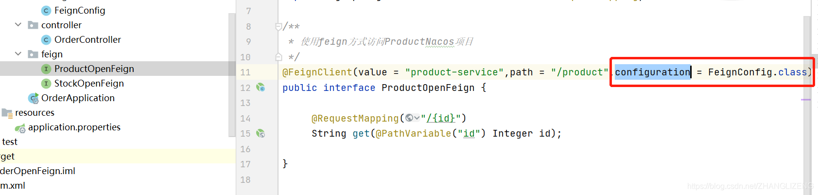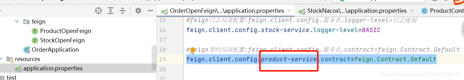 (3)可以在application.properties配置文件中配置,局部指定某个服务使用原生feign配置