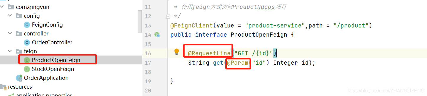 注意:修改Feign的契约后,使用Feign连接的接口不在支持spring mvc的注解,需要使用Feign原生的注解