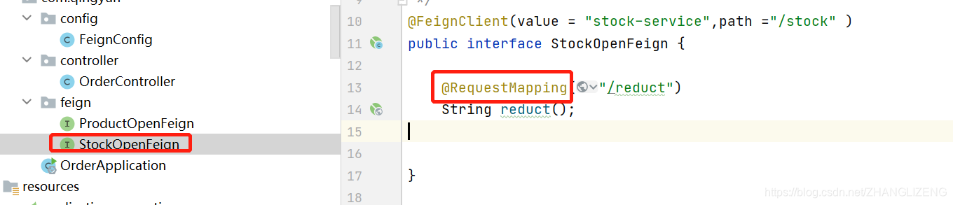 此时只是product-service这个配置了原生的feign,stock-service还是使用spring mvc的注解