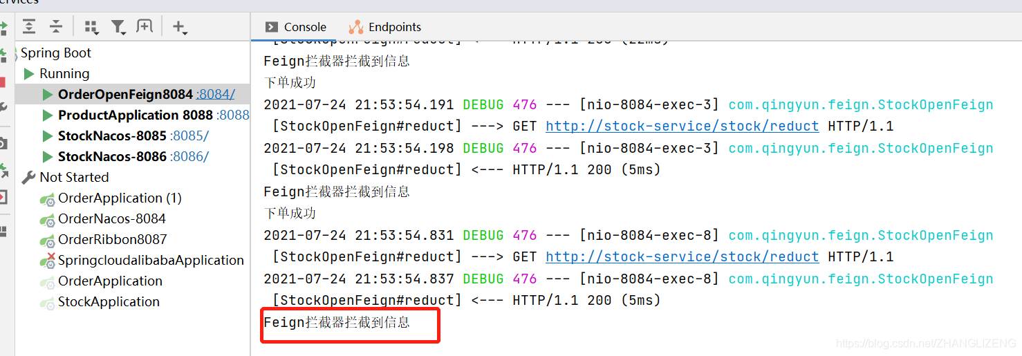 (4)Feign发送请求前拦截控制台打印数据,修改uri的参数成功