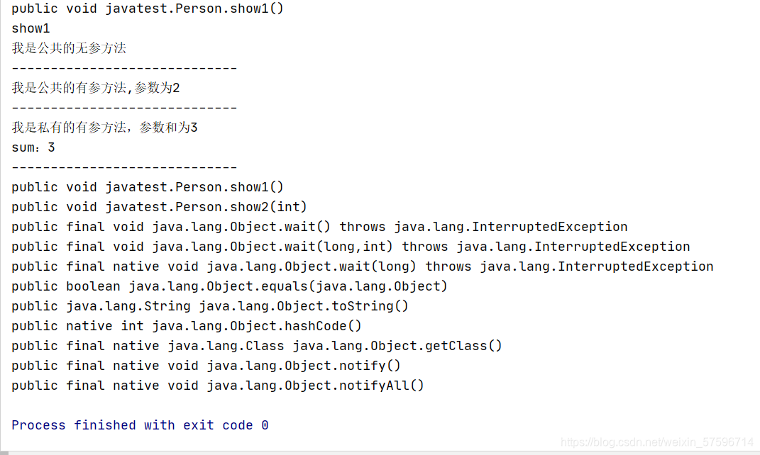 - 结果演示:可以看出只有俩个为Person类的公共方法,其余为Object类方法
