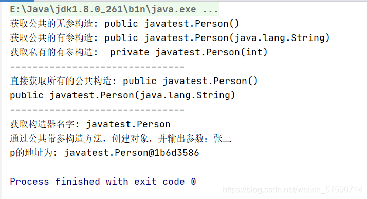 Person p = (Person) con2.newInstance("张三");//默认为Object类型,通过下转型(强制转换)得到Person对象