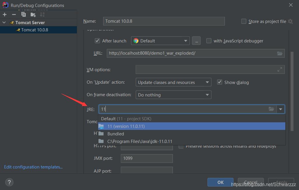 然后又看见有的说,是tomcat中的JRE没配置,默认是Default。