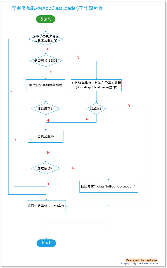 AppClassLoader尝试加载这些类的时候,会先委托ExtClassLoader进行加载;而ExtClassLoader发现不是其加载范围,其返回null;AppClassLoader发现父类加载器ExtClassLoader无法加载,则会查询这些类是否已经被BootstrapClassLoader加载过。而结果表明BootstrapClassLoader 没有加载过它,这时候AppClassLoader只能自己动手负责将其加载到内存中,然后返回对应的Class<com.jon.StudyClassLoader>实例引用。  如上图所示: