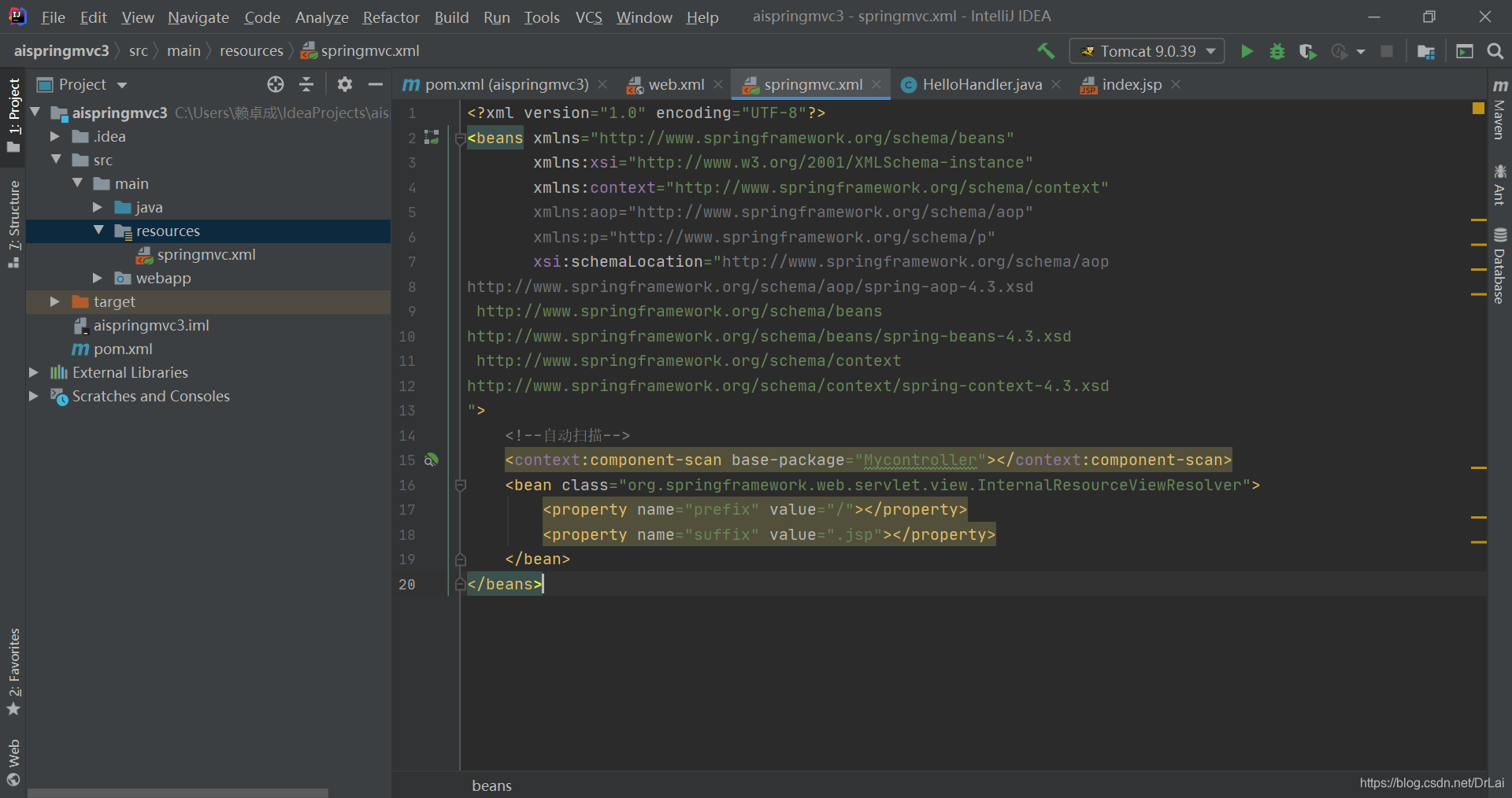 4.创建springmvc.xml文件,并选定resource 为resource root