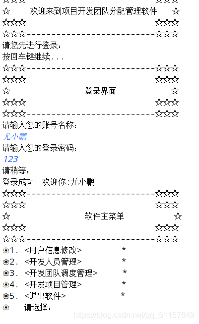 System.out.println("☆ 欢迎来到项目开发团队分配管理软件 ☆");
