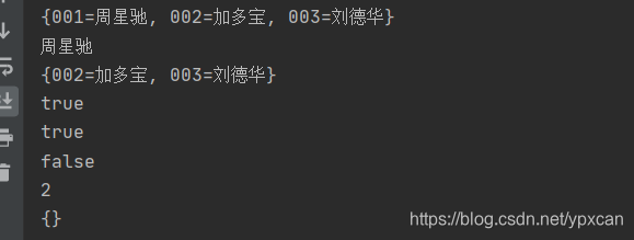 方法名 | 说明 | V put(K key, V value); | 添加元素 | V remove(Object key) | 根据键删除键值对元素 | void clear() | 移除所有的键值对元素 | boolean containsKey(Object key) | 判断集合是否包含指定的键 | boolean containsValue(Object value) | 判断集合是否包含指定的值 | boolean isEmpty() | 判断集合是否为空 | int size() | 集合的长度,也就是集合中键值对的个数 |