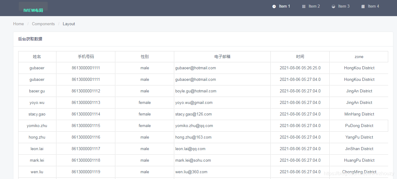 INSERT INTO `zhouzy`.`persons` (`id`, `create_datetime`, `email`, `phone`, `sex`, `username`, `zone`) VALUES ('14', '2021-08-05 21:27:04', 'cora.zhang@qq.com', '8613000001123', 'female', 'cora.zhang', 'XuHui District');