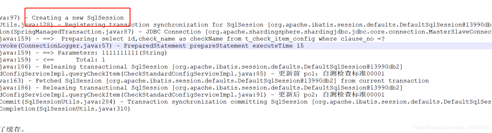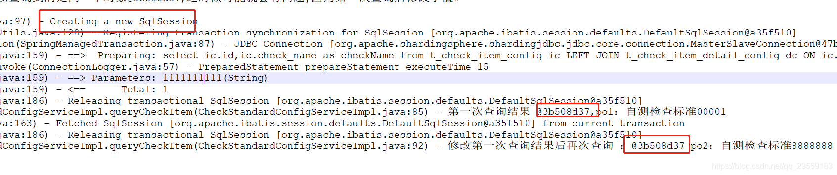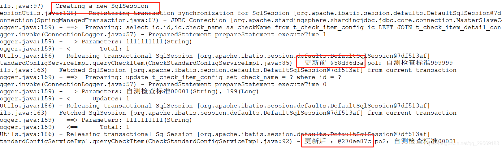 如果仔细上面的日志中会发现一个问题,在验证查询时配置属性flushCache="true"后二次查询和验证更新后二次查询的时候,虽然第二次查询到的对象是新对象,但是日志中没打印SQL。