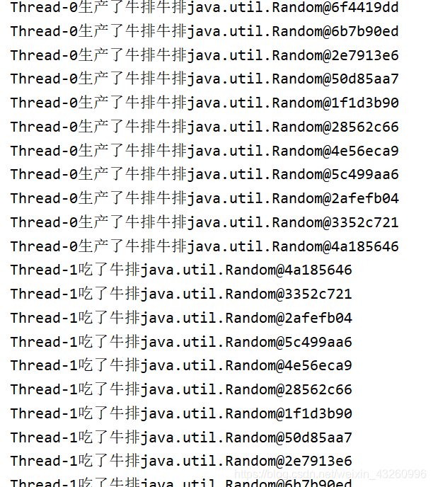 System.out.println(Thread.currentThread().getName() + "生产了牛排" + pro);